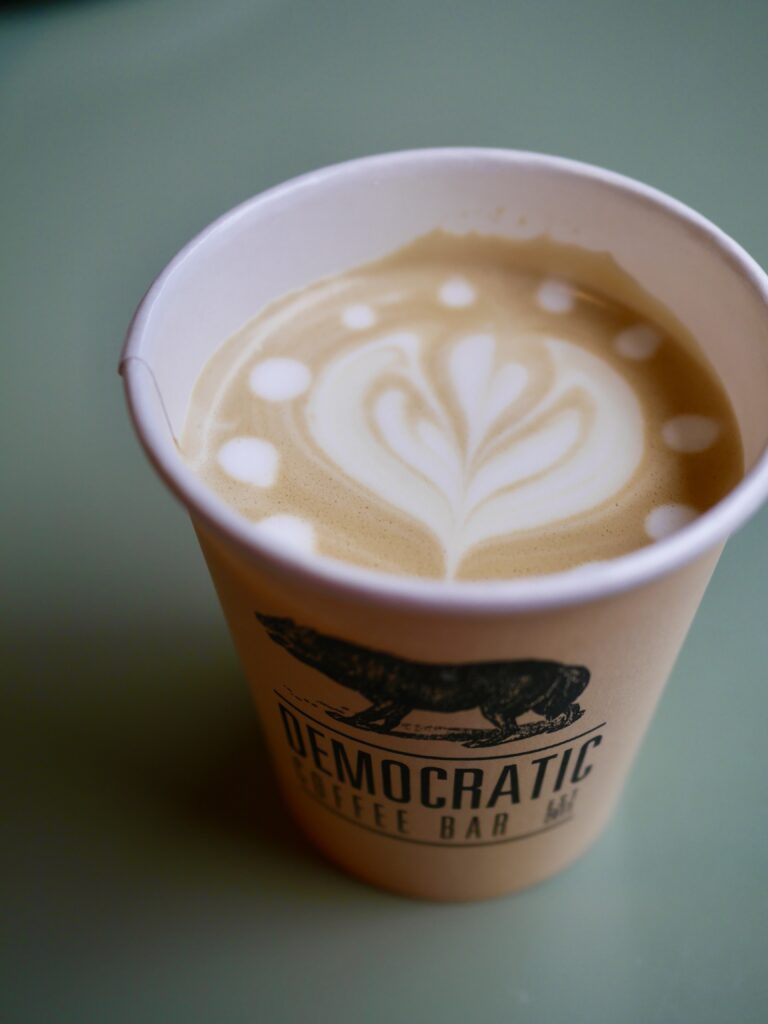 このDemocratic Coffee barは町の中心地にあり、市が運営する中央図書館と繋がっています。朝早くからオープンしているので、仕事前に寄る人、図書館に来る家族連れと終始たくさんの人が訪れる場所でした。