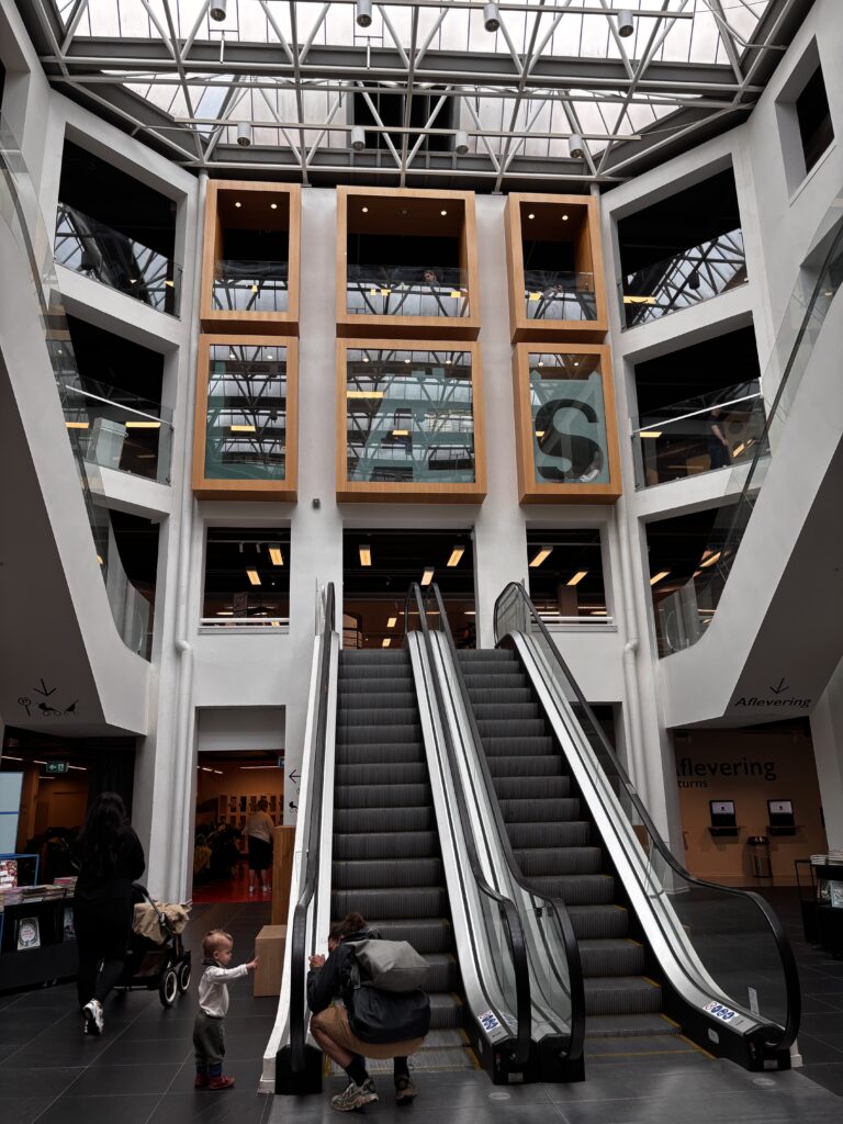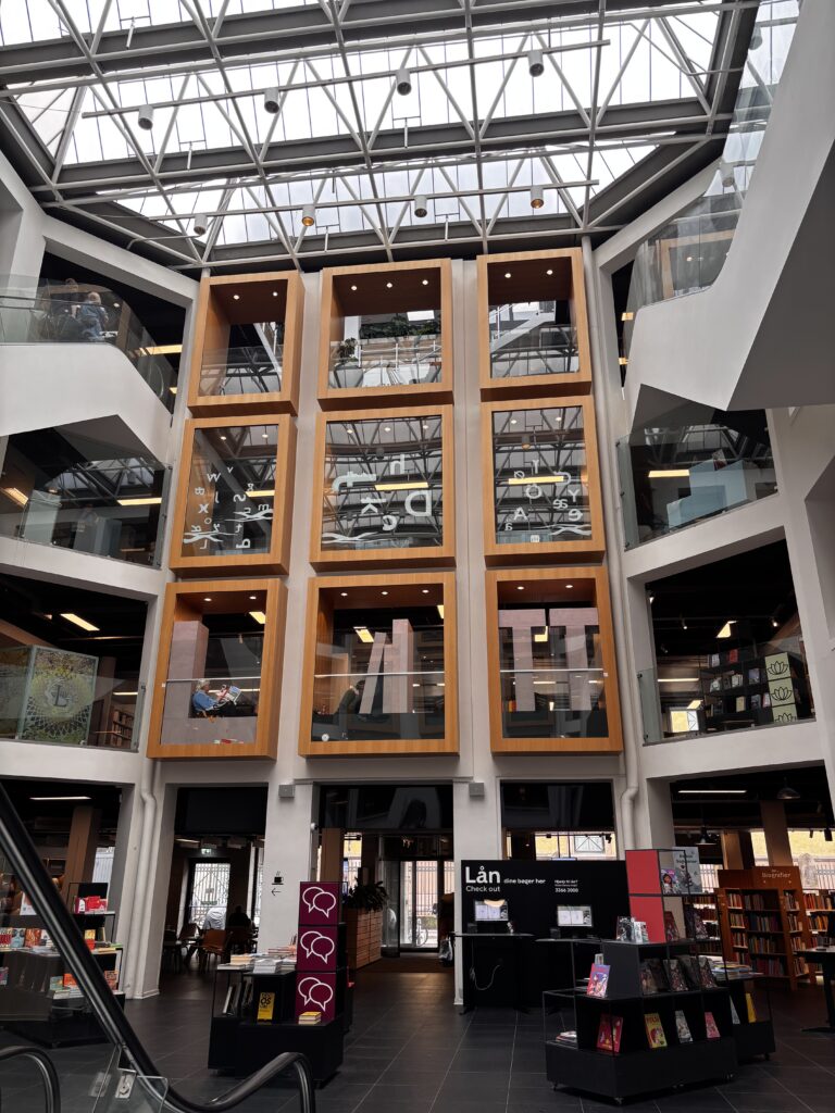 私達も図書館をまわってみました。コペンハーゲンには、コペンハーゲン港のウオーターフロントに建つ通称ブラックダイアモンドと呼ばれる王立図書館があります。